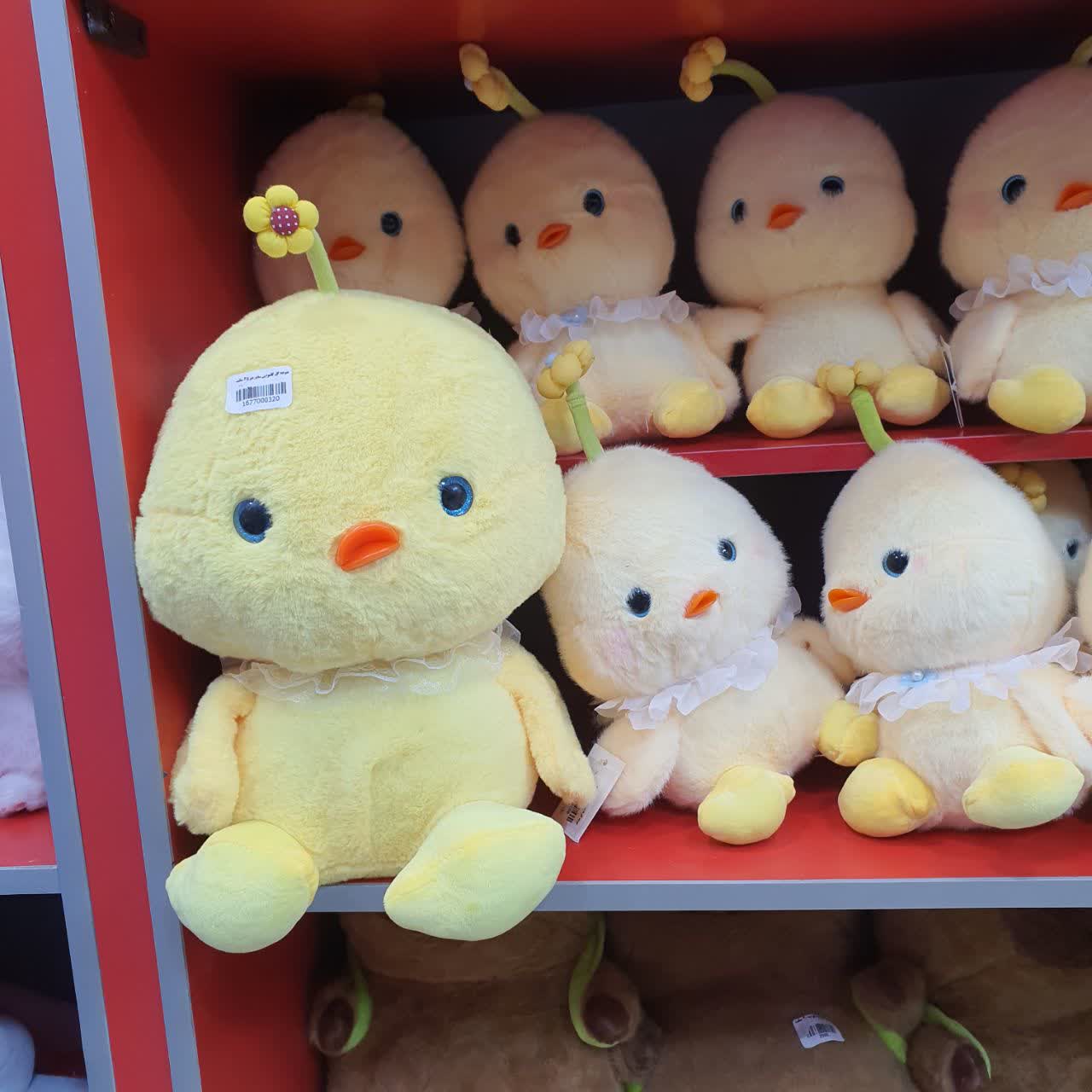 این عروسک ناز و زیبا یک گل بامزه روی سرش دارد که جذابیتش را برای بچه ها چند برابر کرده است.یقه توری دور گردنش ملوس و زیبا است که هر سن و سالی را شیفته خود می کند.