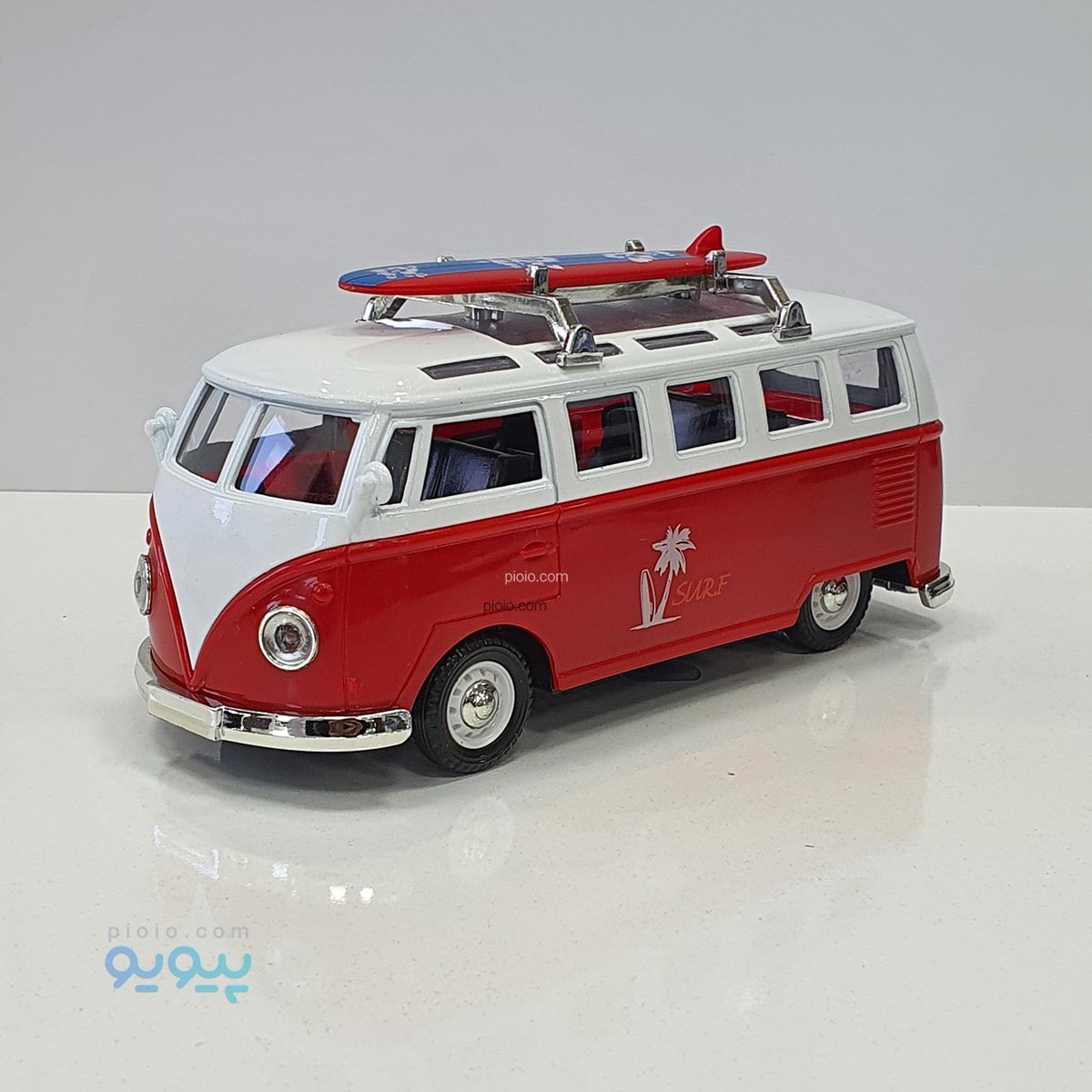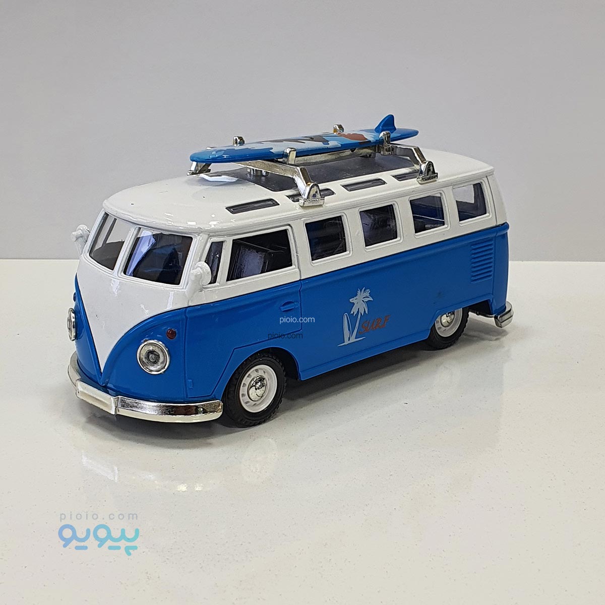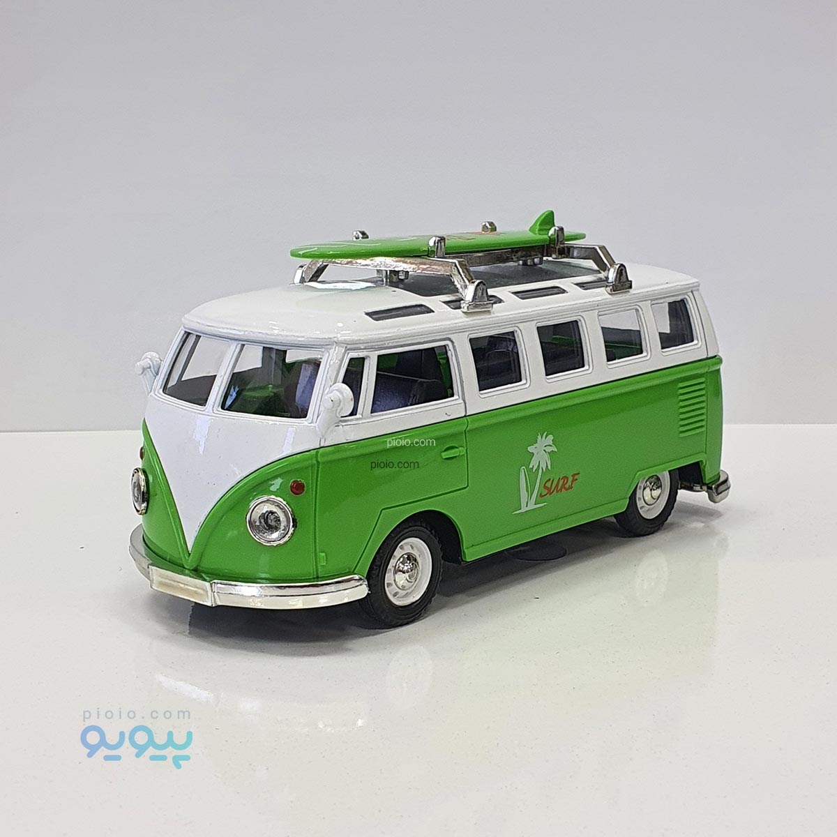 ماشین فلزی فولکس واگن ساحلی 1:36:ماکت ون کلاسیک فولکس با رنگ بندی متنوع و تخته موجسواری روی سقف، یکی از خاصترین مدلهای موجود برای علاقهمندان به سبک زندگی ساحلی و ماشینهای نوستالژیک است. این محصول با طراحی دقیق، جزئیات کامل و گرافیک نخل و نوشته SURF روی بدنه، حس سفرهای تابستانی و آزادی را بهخوبی منتقل میکند.