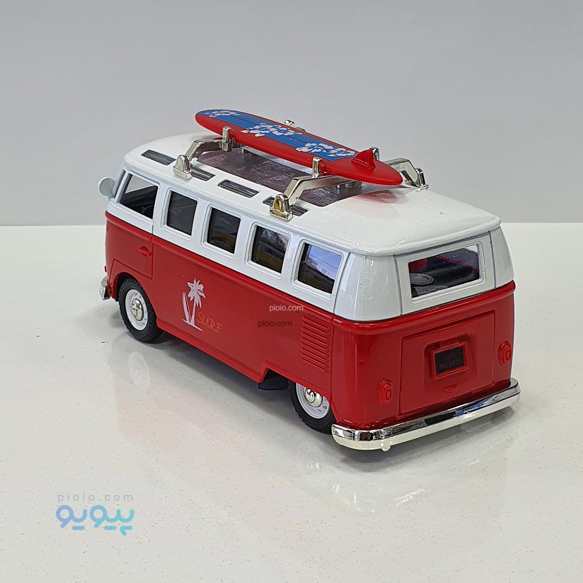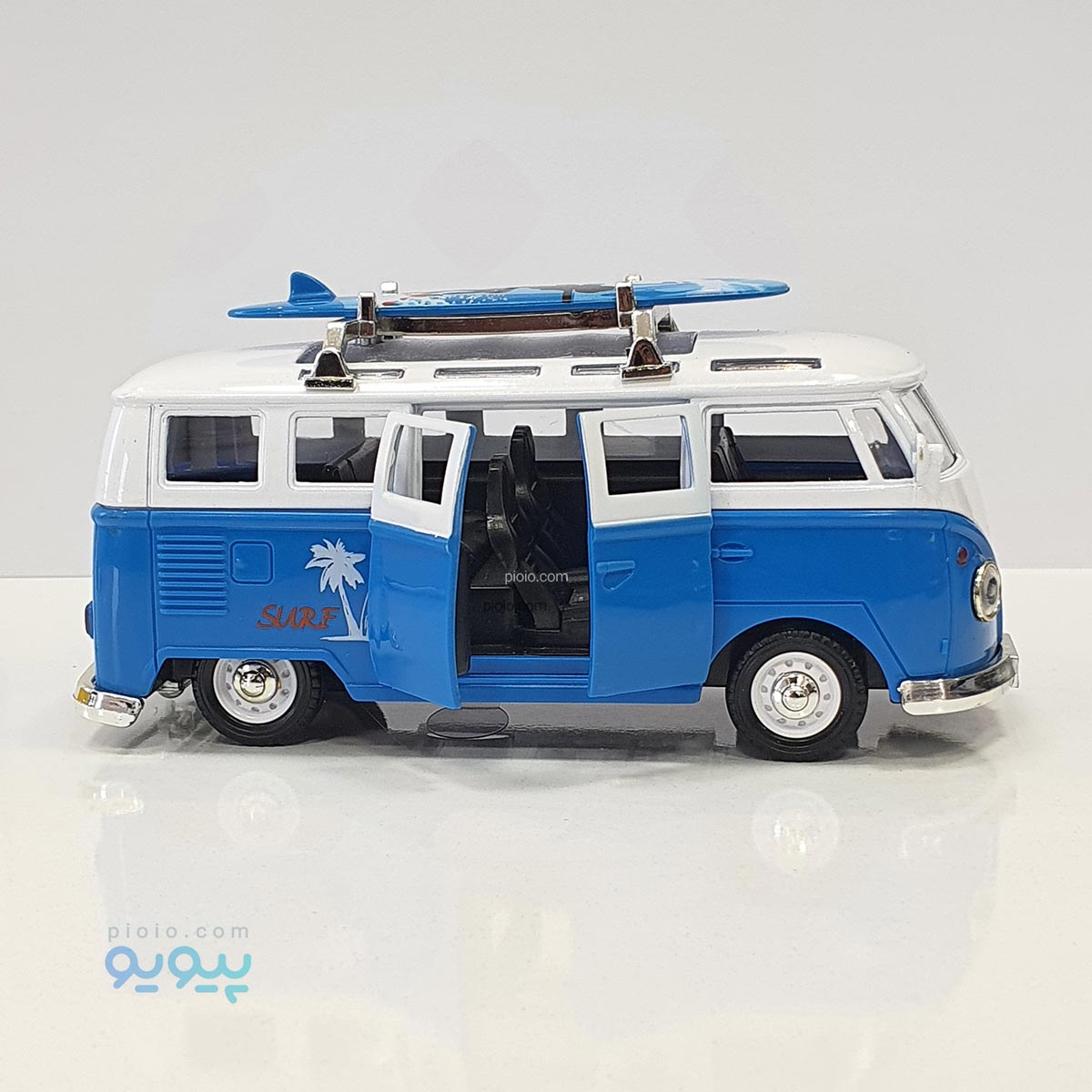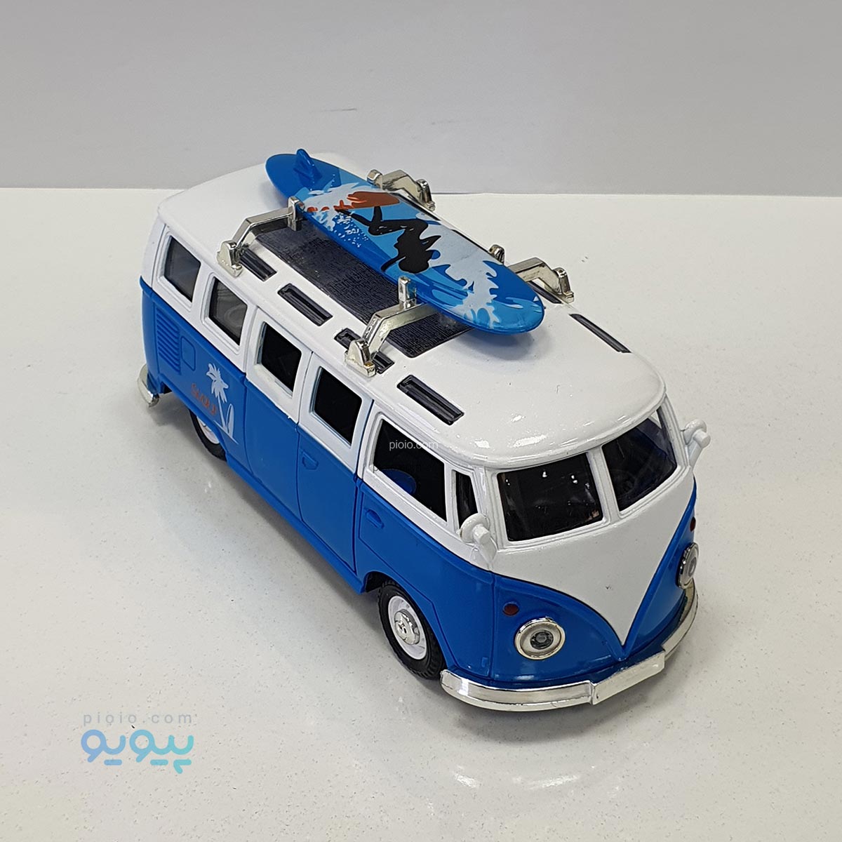 ماشین فلزی فولکس واگن ساحلی 1:36:ماکت ون کلاسیک فولکس با رنگ بندی متنوع و تخته موجسواری روی سقف، یکی از خاصترین مدلهای موجود برای علاقهمندان به سبک زندگی ساحلی و ماشینهای نوستالژیک است. این محصول با طراحی دقیق، جزئیات کامل و گرافیک نخل و نوشته SURF روی بدنه، حس سفرهای تابستانی و آزادی را بهخوبی منتقل میکند.