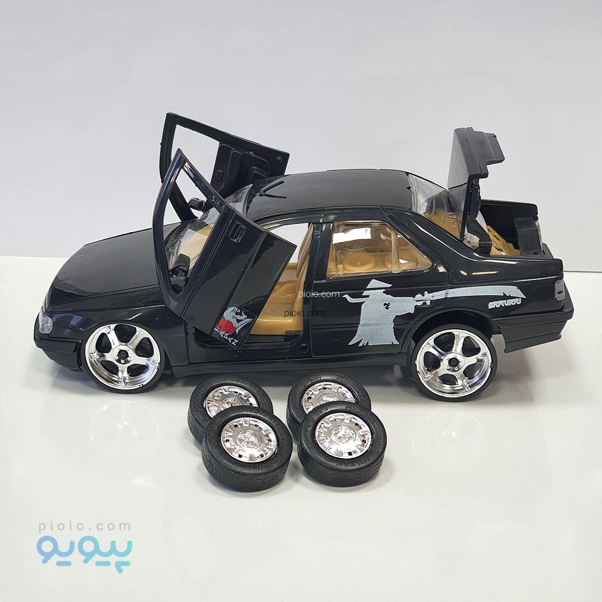 این ماشین پلاستیکی جذاب بدنه طرح دار و اسپرتی است که یک طرح خاص و متفاوت است و درهای بازشو جذابیت ماشین را بیشتر کرده است.